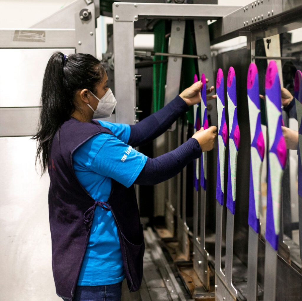 All of our Italian Lonati machines are closed toe with “S by S” technology, which means -stitch by stitch- and allows the seam to be imperceptible, achieving the finest quality finishing and total comfort.